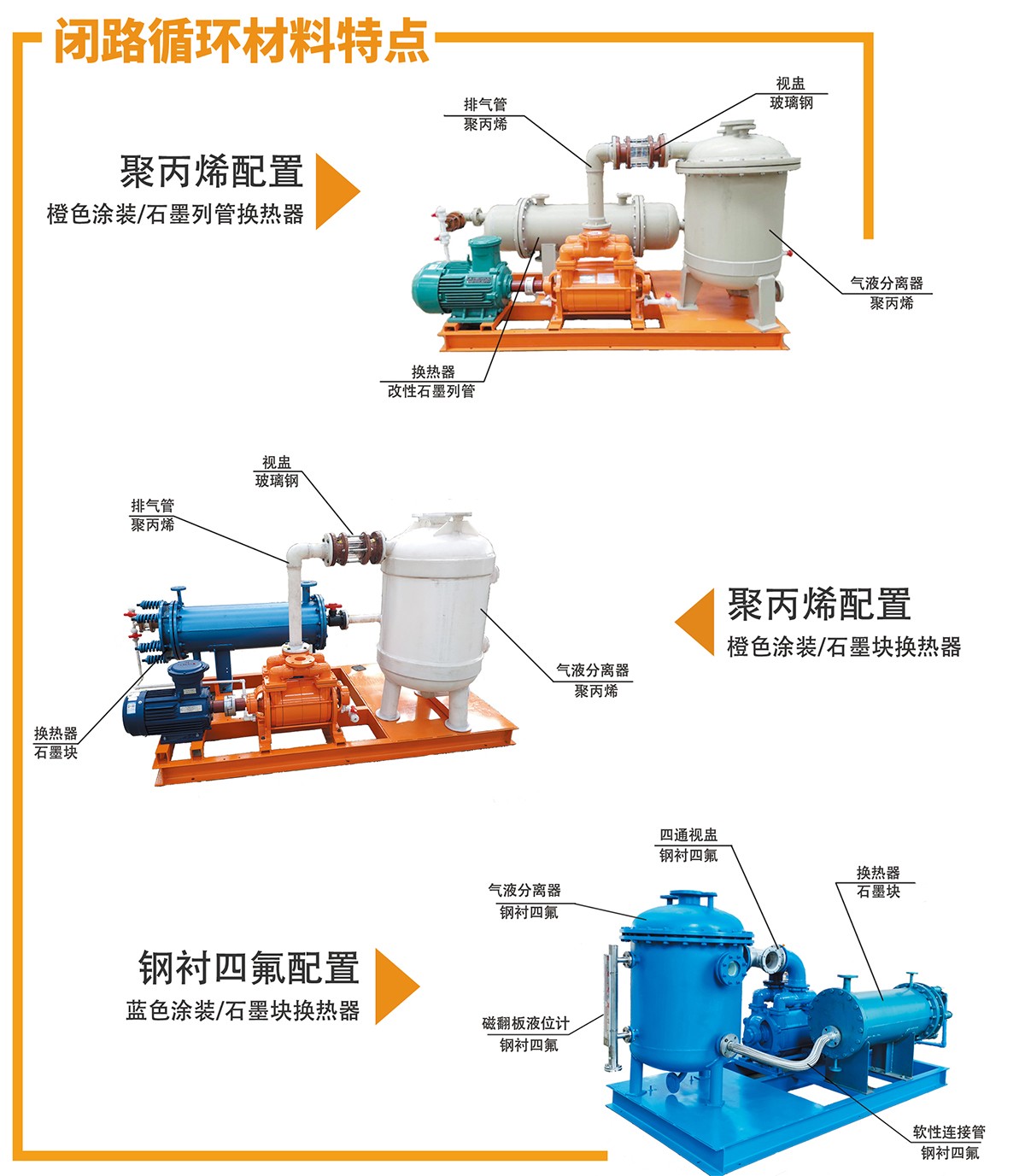 耐腐蝕液環(huán)泵可以升級(jí)為閉路循環(huán)系統(tǒng),它由FSK系列、F2SK系列、F2BV系列、F2BE系列和JZJFS羅茨泵系列,與真空換緩沖罐、汽液分離器、換熱器、連接管路等串聯(lián)組成。閉路循環(huán)與用戶DCS 連接可實(shí)現(xiàn)自動(dòng)控制。